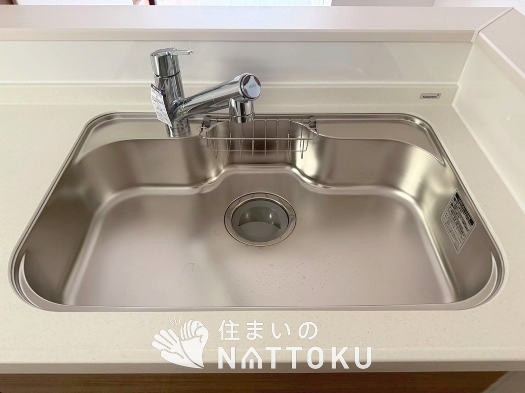 広々とした凸型シンクに洗剤ポケットを標準...
