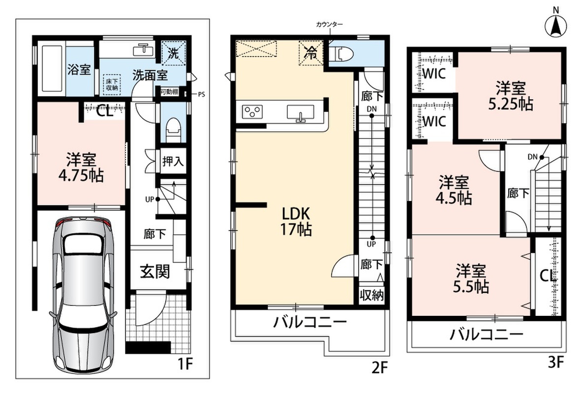 - ※完成予想図やCG合成画像は、門塀・植栽・庭・外観等、実際とは多少異なる場合があります。