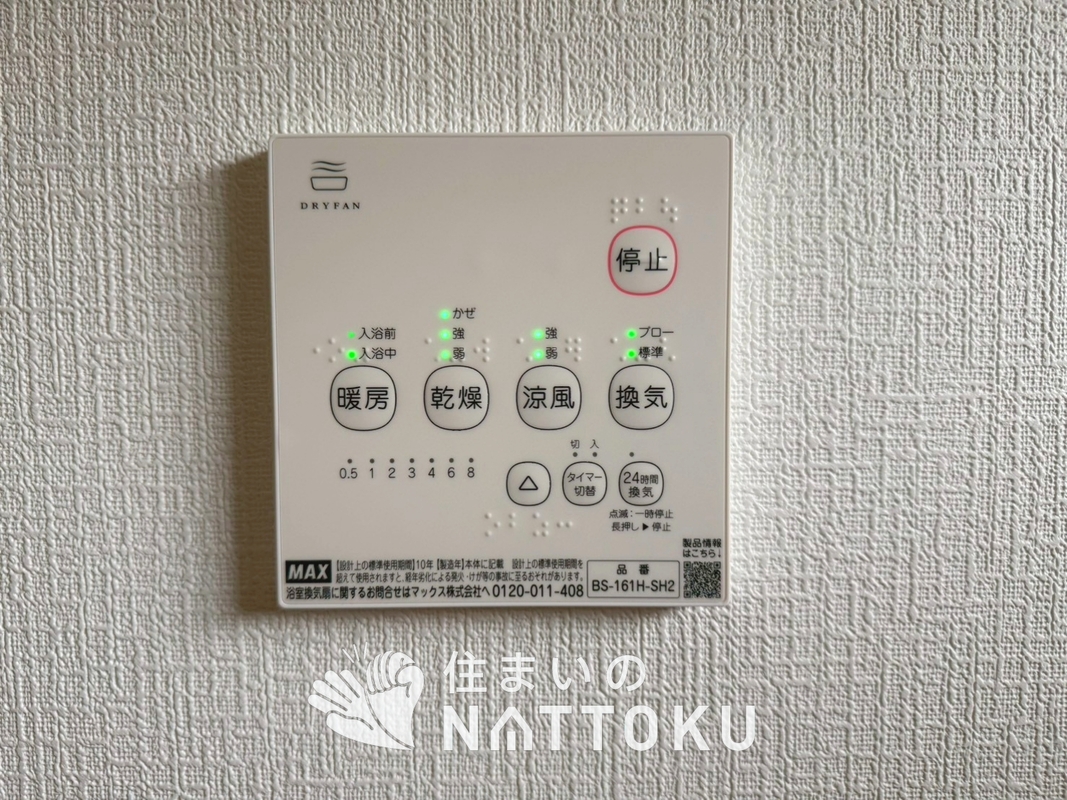 見やすいボタン配置で換気・暖房・乾燥・涼...