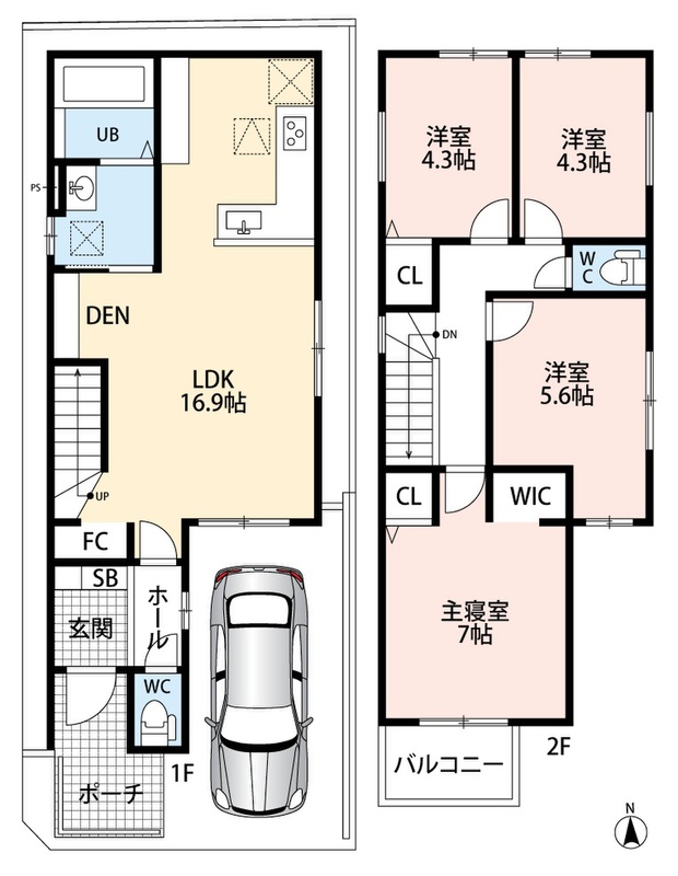 Terrechez 高槻市西冠 第1期 全2邸 間取り 4LDK 価格 3898万円 建物面積 90.78m2~97.7m2 土地面積 84.09m2~88.72m2 -