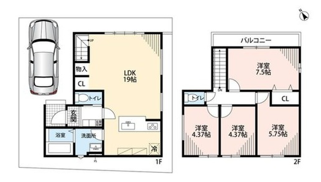 Terrechez草津市上笠 第2期 限定1邸 間取り 4LDK 価格 3598万円 建物面積 90.87m2 土地面積 90.11m2 -