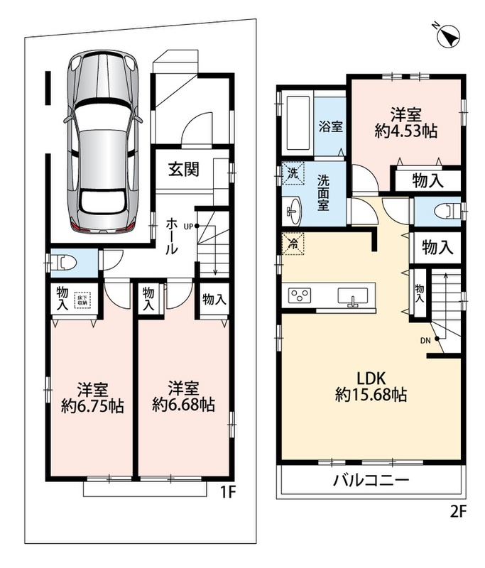 | 建物面積 | 79.7m2~92.68m2 | 土地面積 | 72.94m2~76.51m2 |