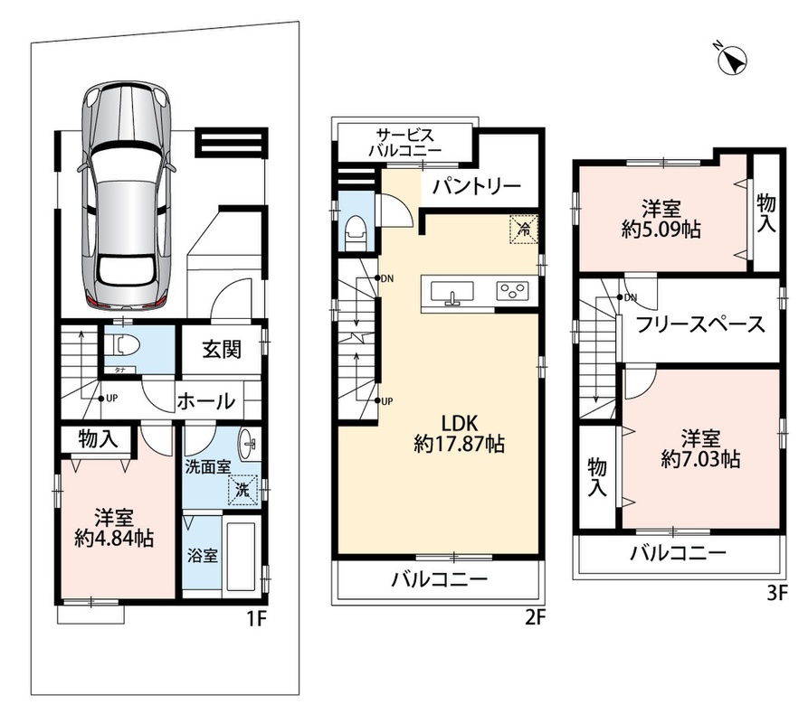 | 間取り | 3LDK | 建物構造 | 木造2階建(軸組工法)、木造3階建(軸組工法) |