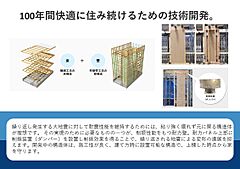 軸組工法と枠組壁工法のメリットを併せ持ち、パネル工場で製作された高品質な耐力壁と、当社の技術を用いて、建築現場で効率よく組み立てられるよう考えられた合理化工法です。