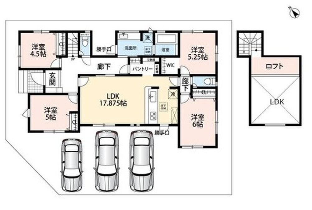 ・前道6.8mでラクラク駐車3台可能!