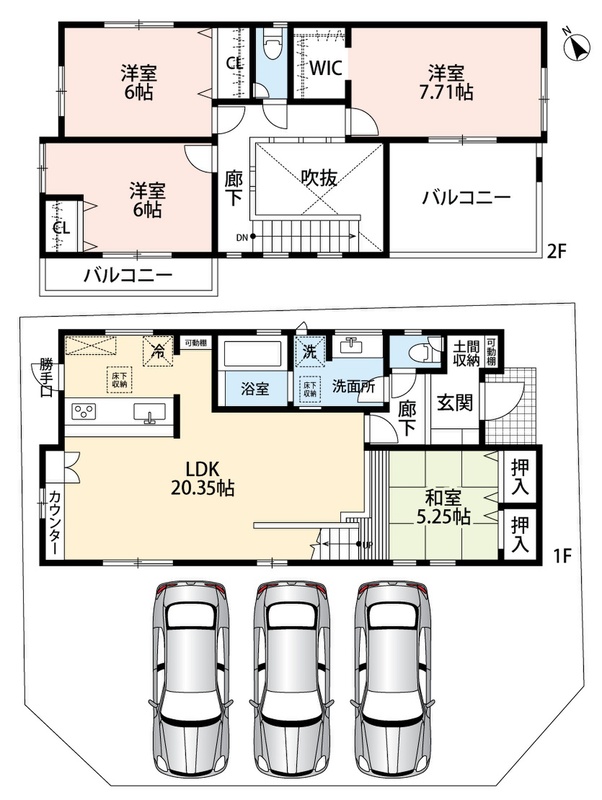 ・前道6mでラクラク駐車3台可能!