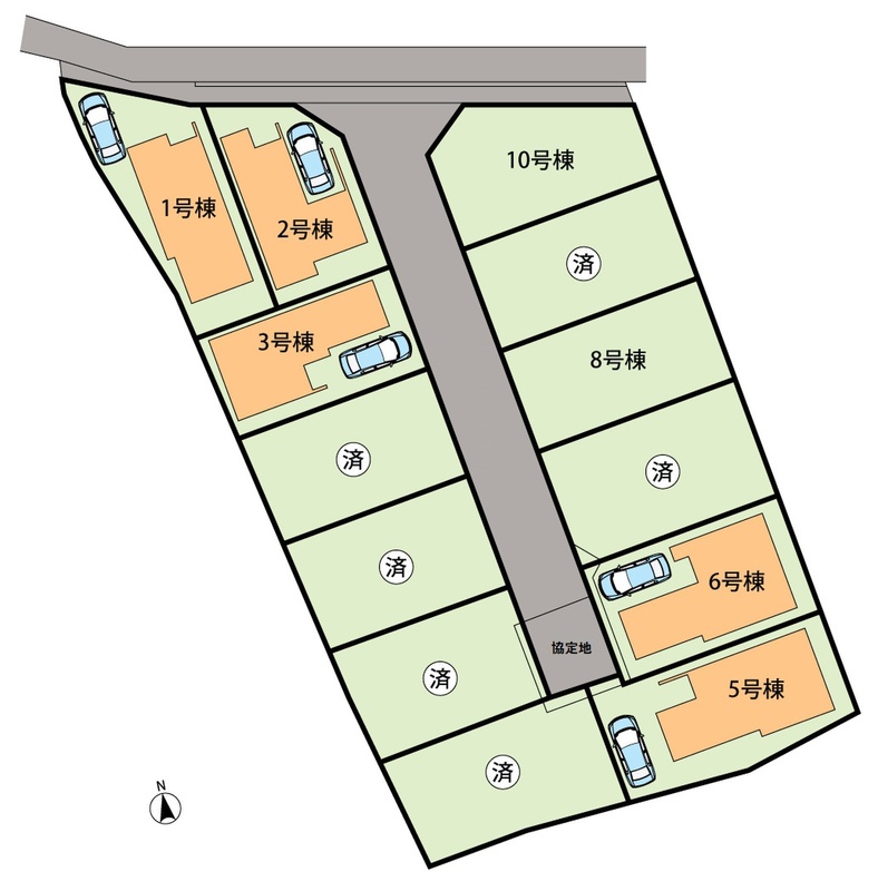 | 駐車場 | 1台 | 道路の幅員 | 道路幅:2.8m~4.7m、アスファルト舗装、協定地部分有13.78m2(5号棟)4.43m2(6号 |