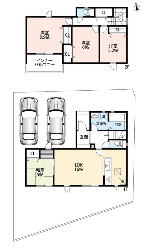 ・ゆとりのある敷地で並列駐車2台!