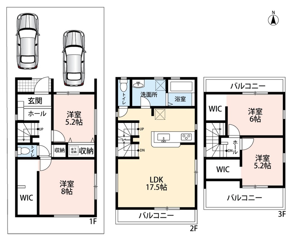 | 間取り | 3LDK~4LDK | 建物構造 | 木造2階建(軸組工法)、木造3階建(軸組工法) |