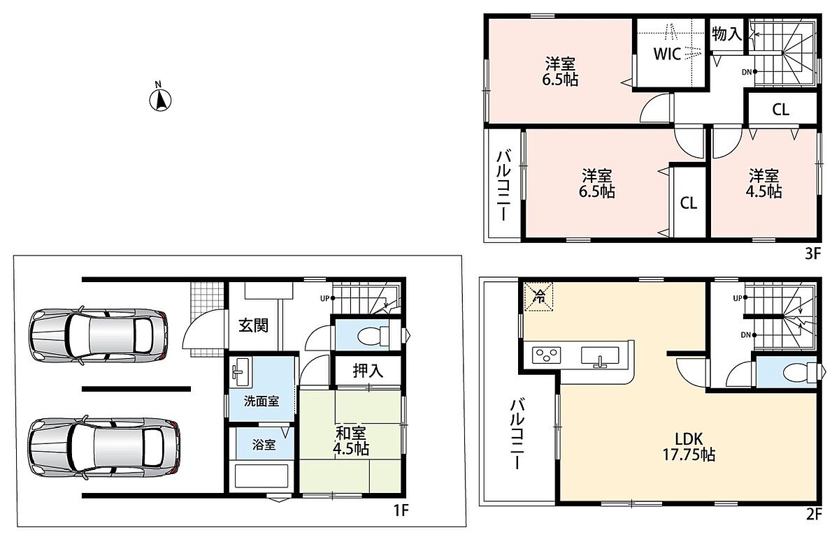 - ※完成予想図やCG合成画像は、門塀・植栽・庭・外観等、実際とは多少異なる場合があります。