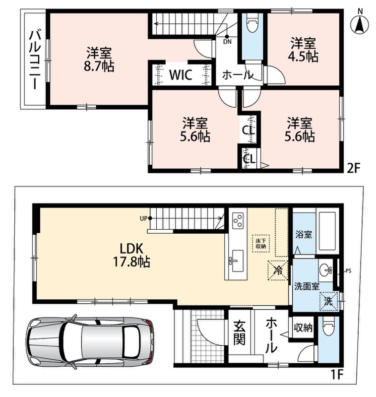 2号地 間取り 4LDK 価格 3998万円 建物面積 96.37m2 土地面積 97.94m2