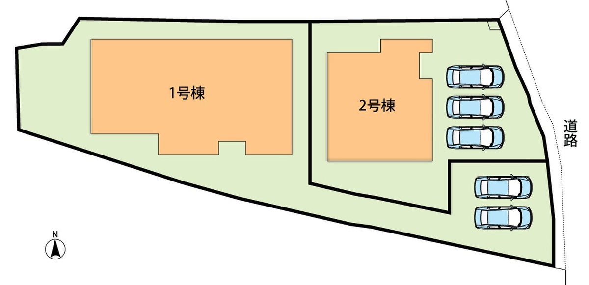 | 駐車場 | 2台 ~ 3台 | 道路の幅員 | 道路幅:2m~2.5m、アスファルト舗装、セットバック:(1号地)7.218m2、(2号地)9.85 |