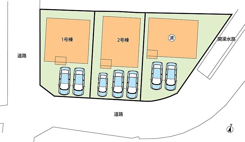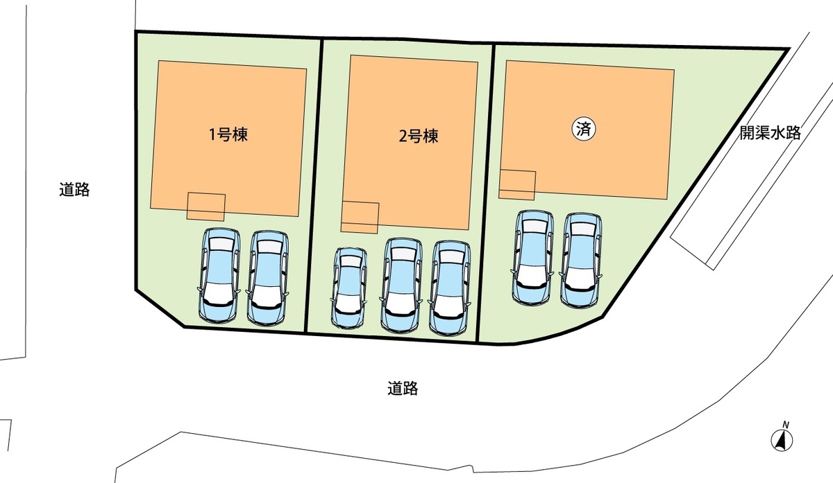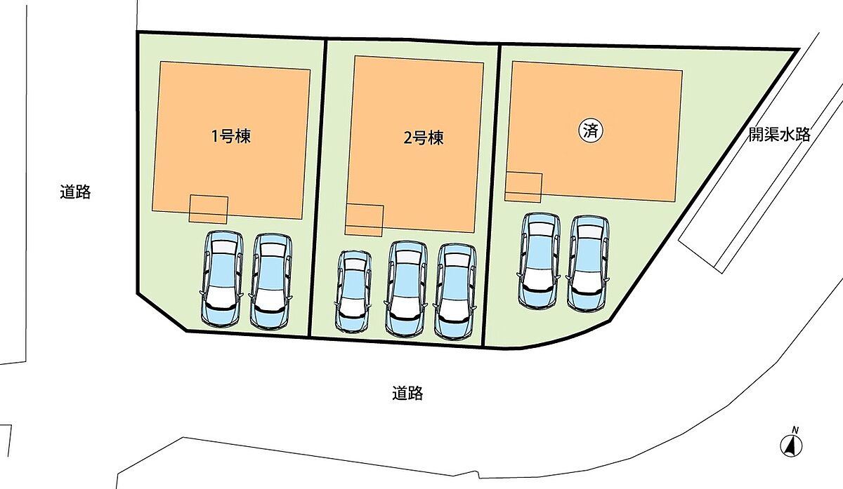 | 駐車場 | 2台 ~ 3台 | 道路の幅員 | 西側5.2m、南側7.7m |