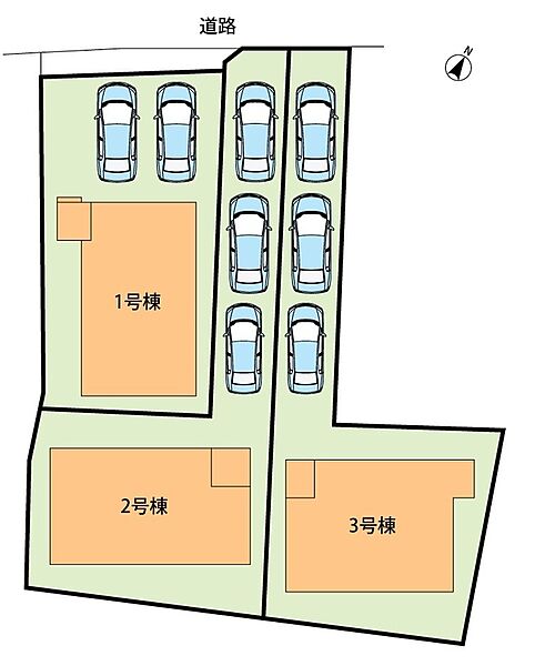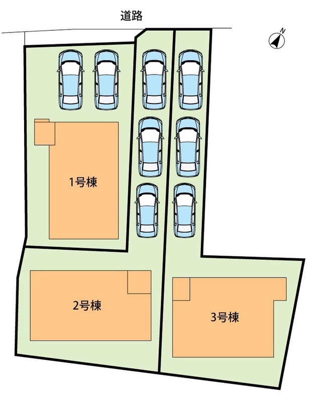| 駐車場 | 2台 ~ 3台 | 道路の幅員 | 道路幅:4m、アスファルト舗装、セットバック:(1号地)8.00m2、(2号地)0.41m2 |