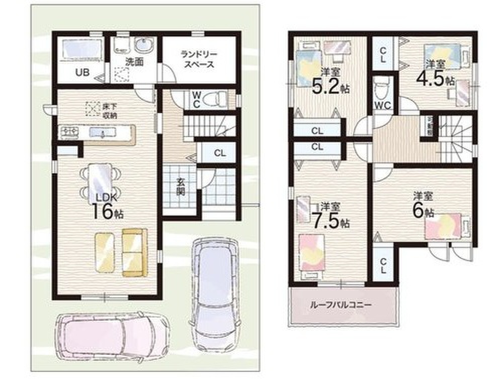 - ※完成予想図やCG合成画像は、門塀・植栽・庭・外観等、実際とは多少異なる場合があります。