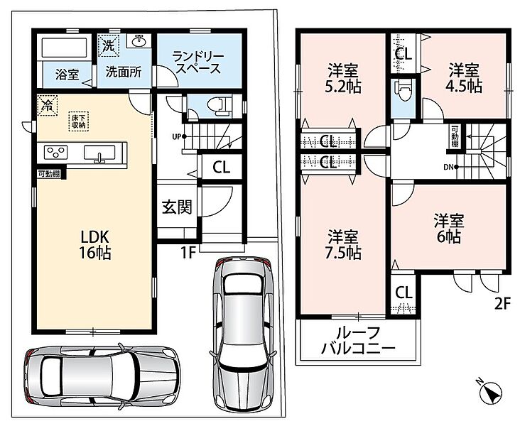 ・前道6mでラクラク駐車2台可能!