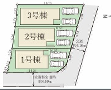 | 駐車場 | 2台 | 道路の幅員 | 道路幅:4m・4.1m、アスファルト舗装 |