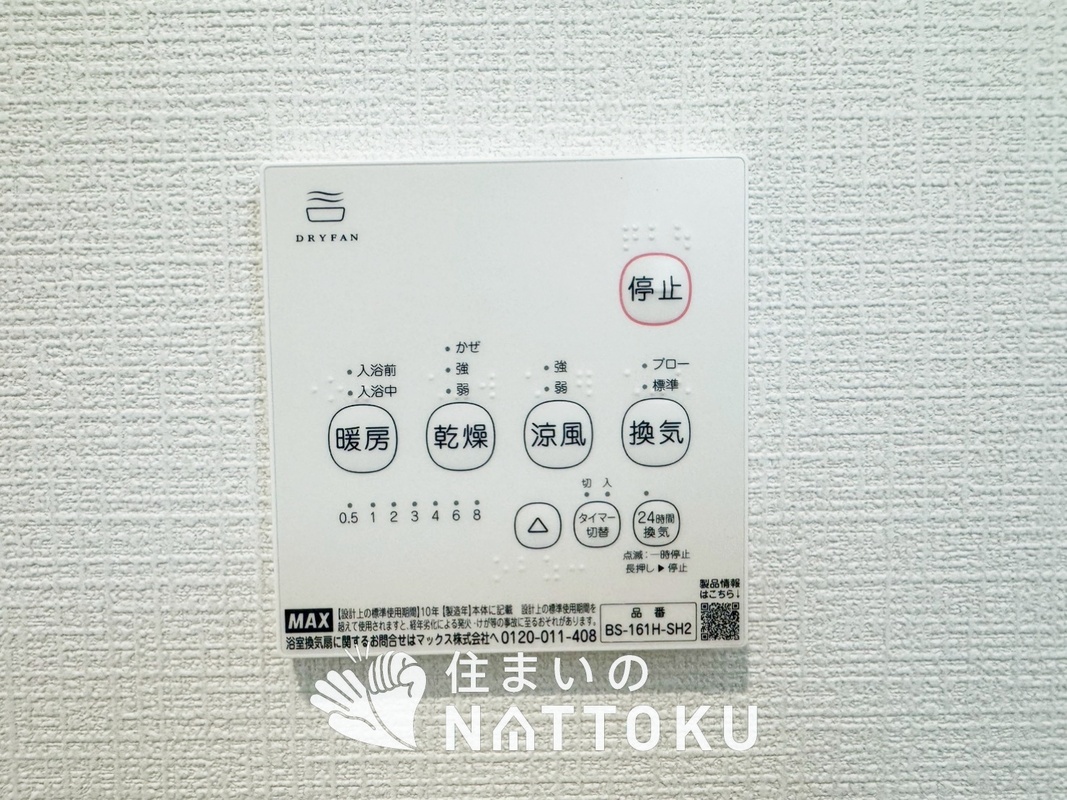 見やすいボタン配置で換気・暖房・乾燥・涼...