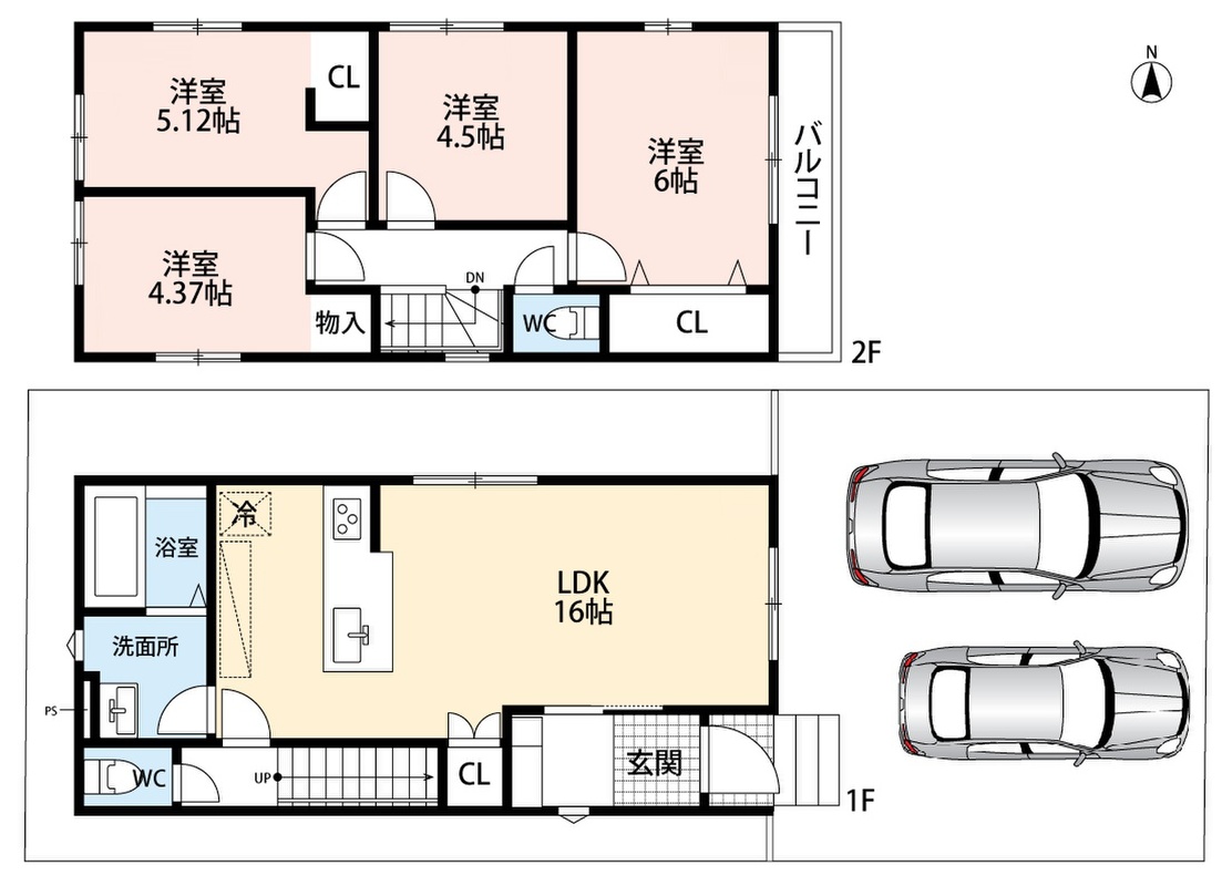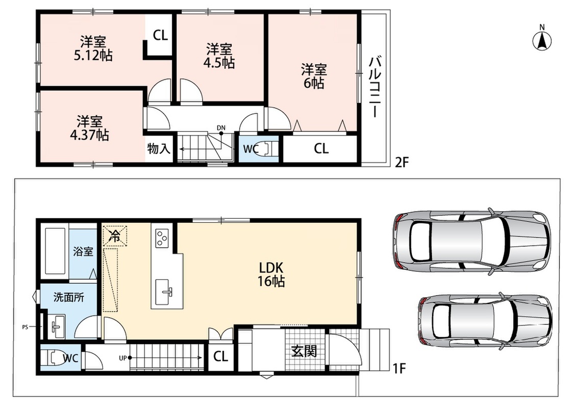 2号地 間取り 4LDK 価格 3498万円 建物面積 85.7m2 土地面積 106.19m2 -