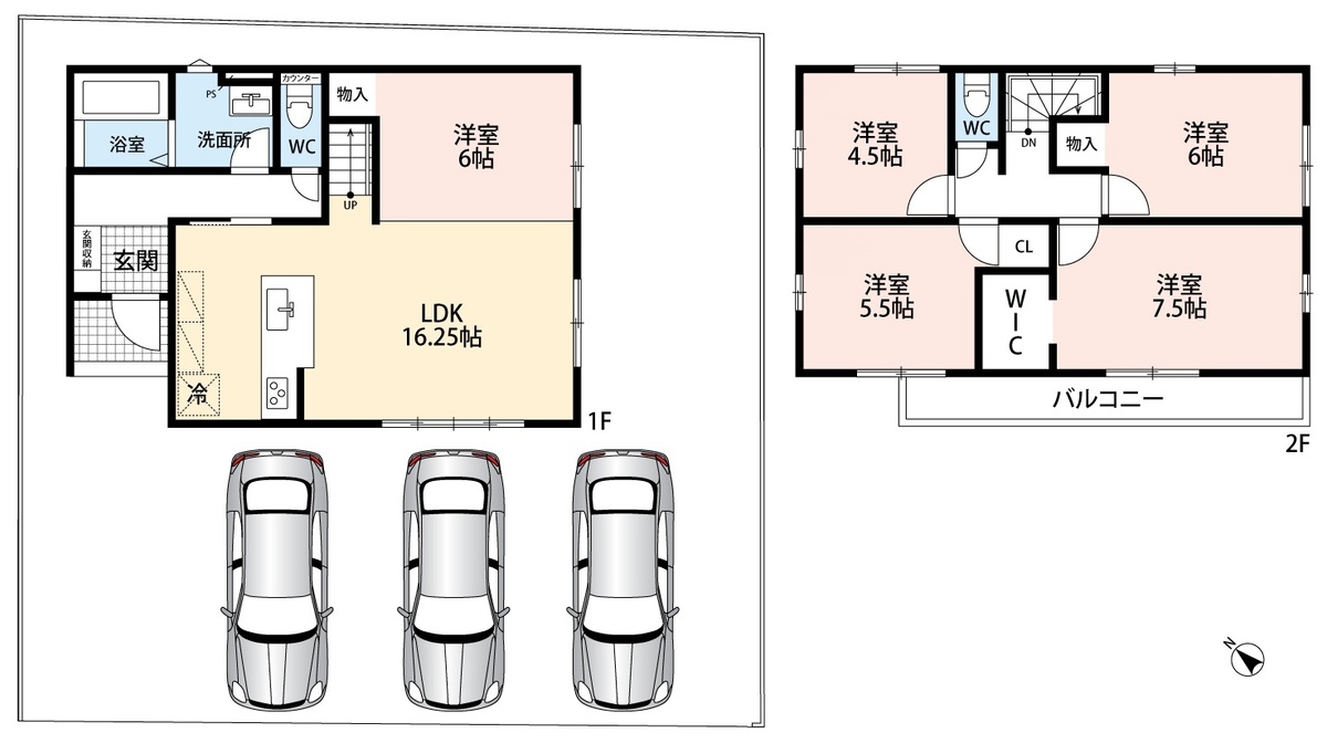 ・前道4mでラクラク駐車3台可能!