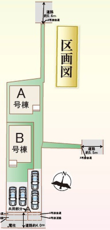 | 駐車場 | 2台 | 道路の幅員 | 南側4m、東側5.5m、北側5.4m |