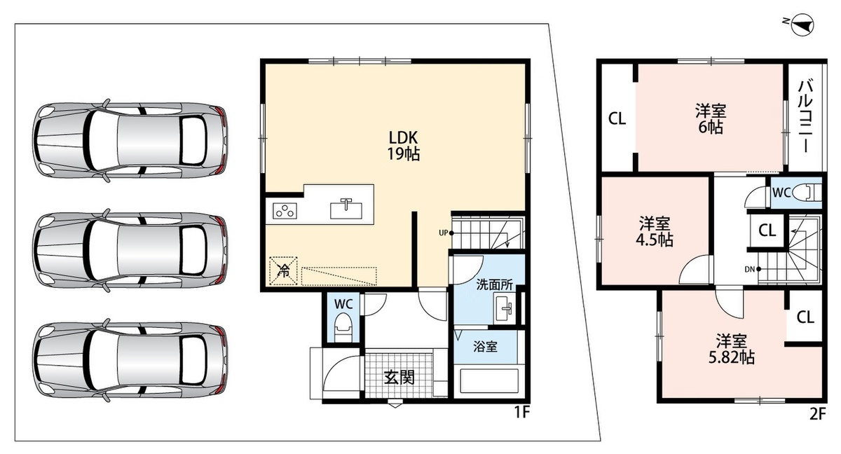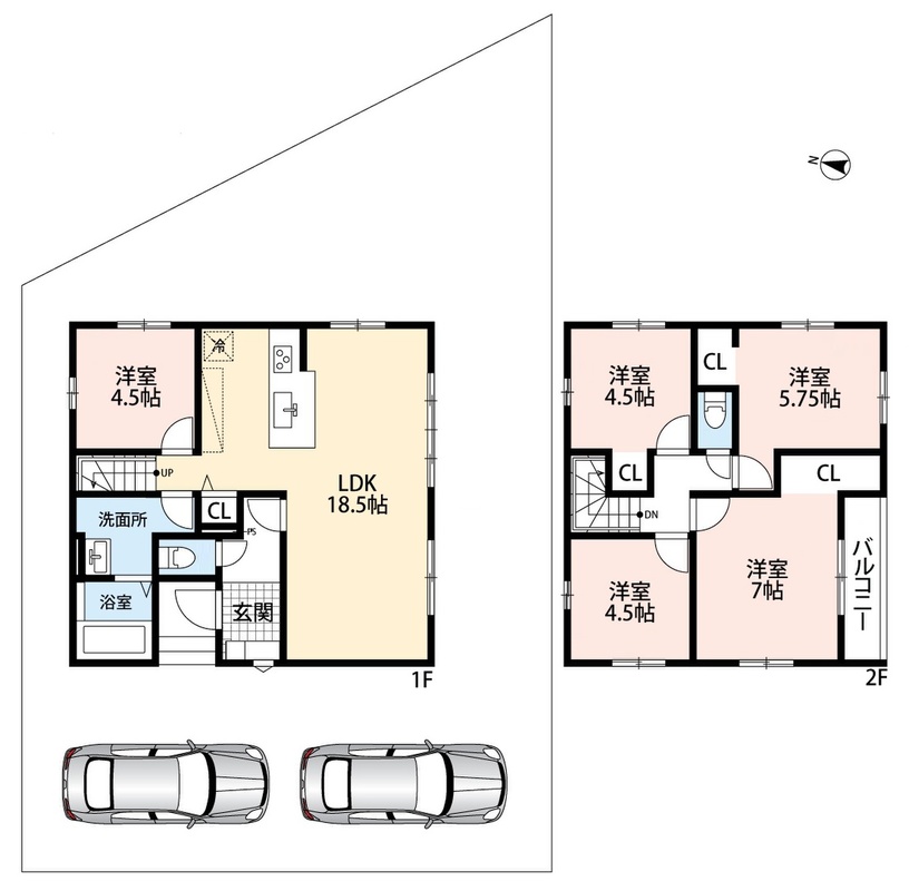 1号地 間取り 5LDK 価格 4398万円 建物面積 100.19m2 土地面積 193.14m2 -