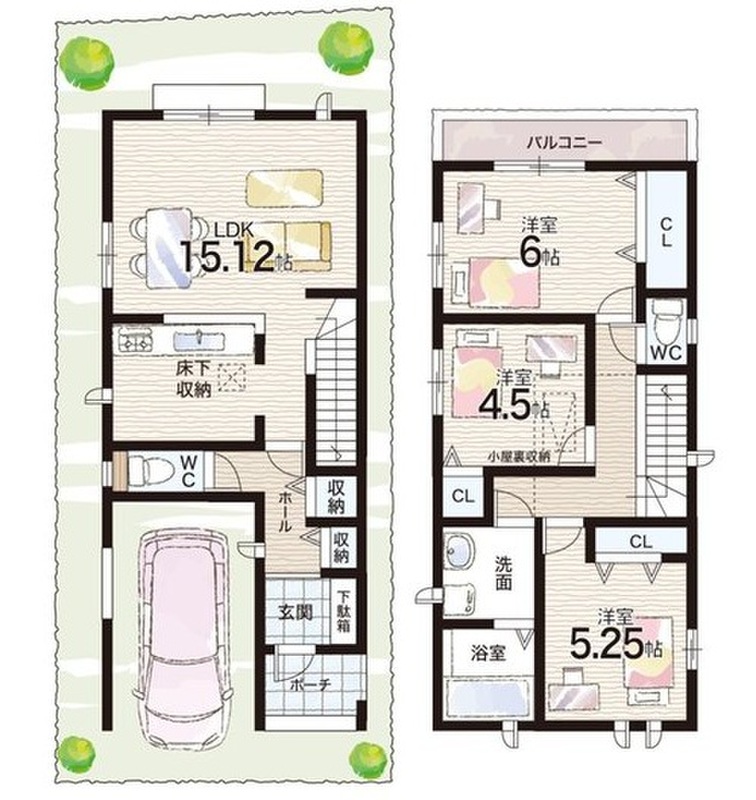 - ※完成予想図やCG合成画像は、門塀・植栽・庭・外観等、実際とは多少異なる場合があります。