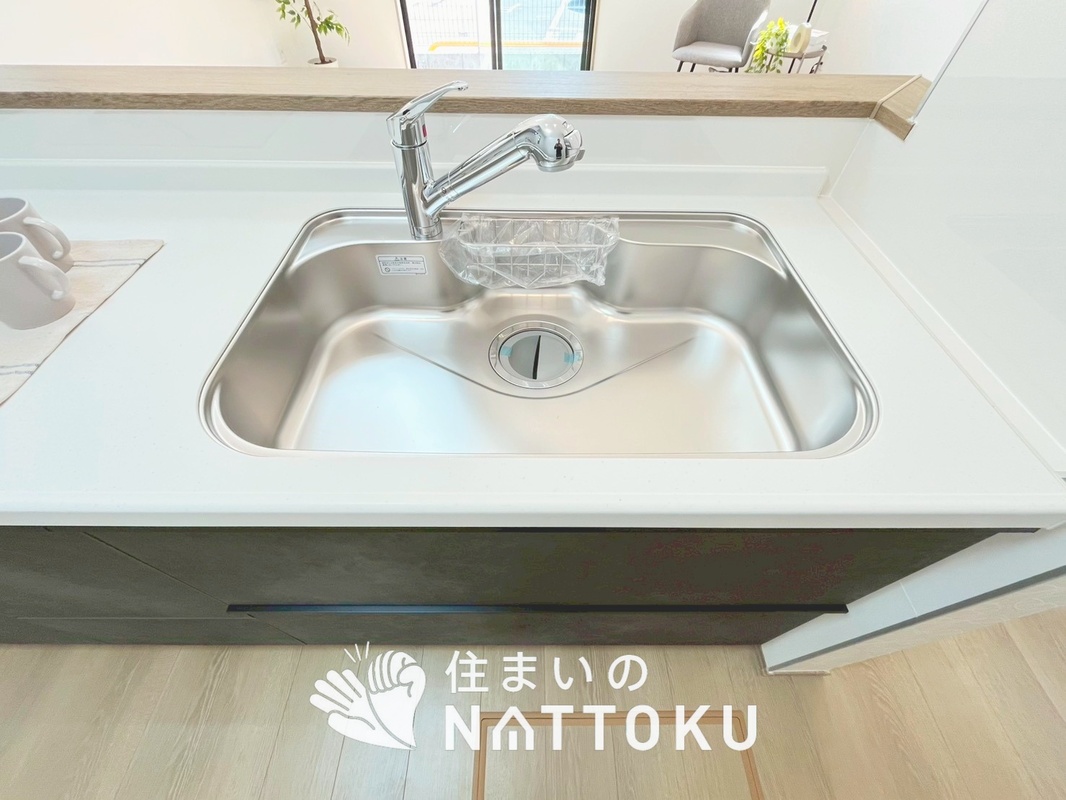 広々とした凸型シンクに洗剤ポケットを標準...