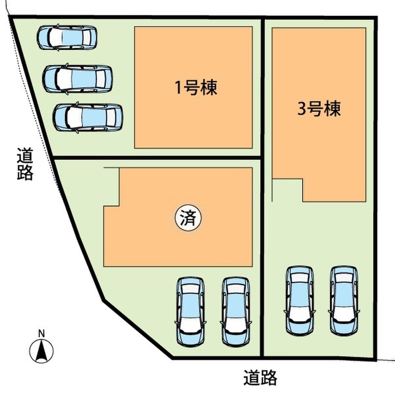 | 駐車場 | 2台 ~ 3台 | 道路の幅員 | 道路幅:3.6m~4.7m、アスファルト舗装、セットバック:(1号地)2.26m2、(2号地)0.6 |
