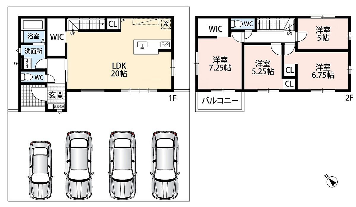 ・ゆとりのある敷地で並列駐車4台可能!