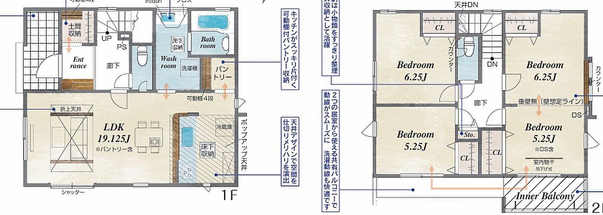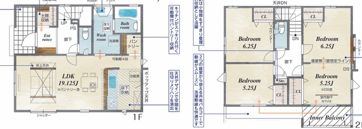 - ※完成予想図やCG合成画像は、門塀・植栽・庭・外観等、実際とは多少異なる場合があります。