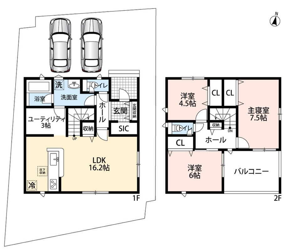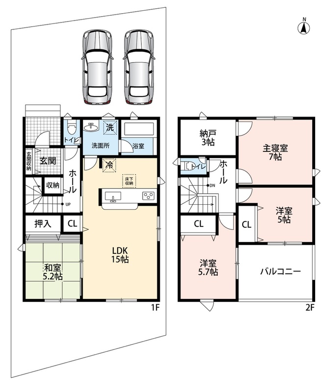 ・前道6mでラクラク駐車2台可能!