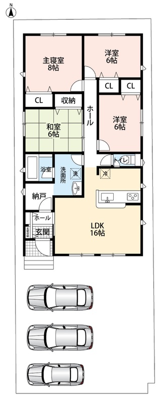 ・前道4mでラクラク駐車3台可能!