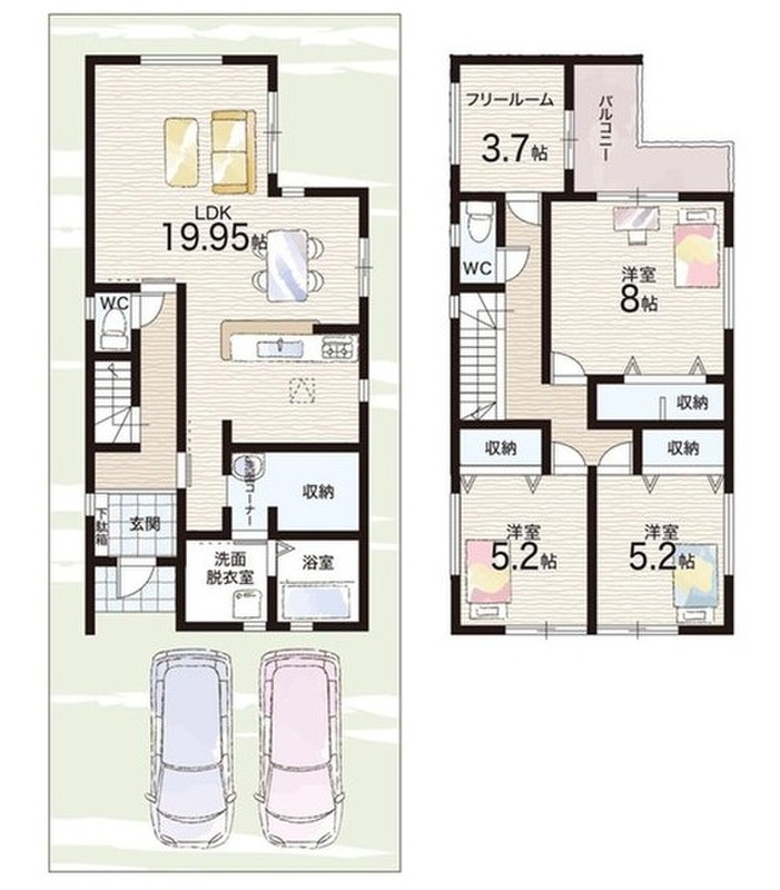 ・前道7.3mでラクラク駐車2台可能!