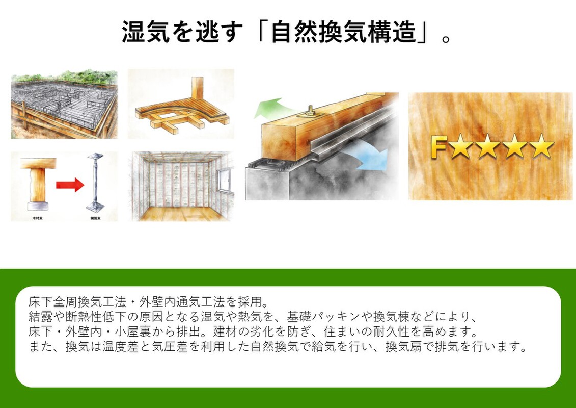 しっかりした基礎と構造で、強い建物を作る。そして長期保証とアフターメンテナンスで、安心安全な暮らしを守る。家族を守り、家族のみらいを育む、安心な住まいであるために。