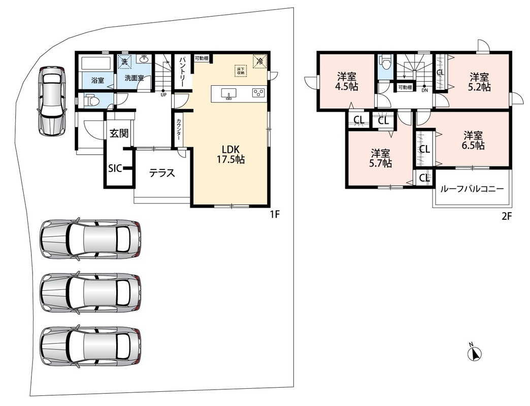 ・前道4mでラクラク駐車4台可能!