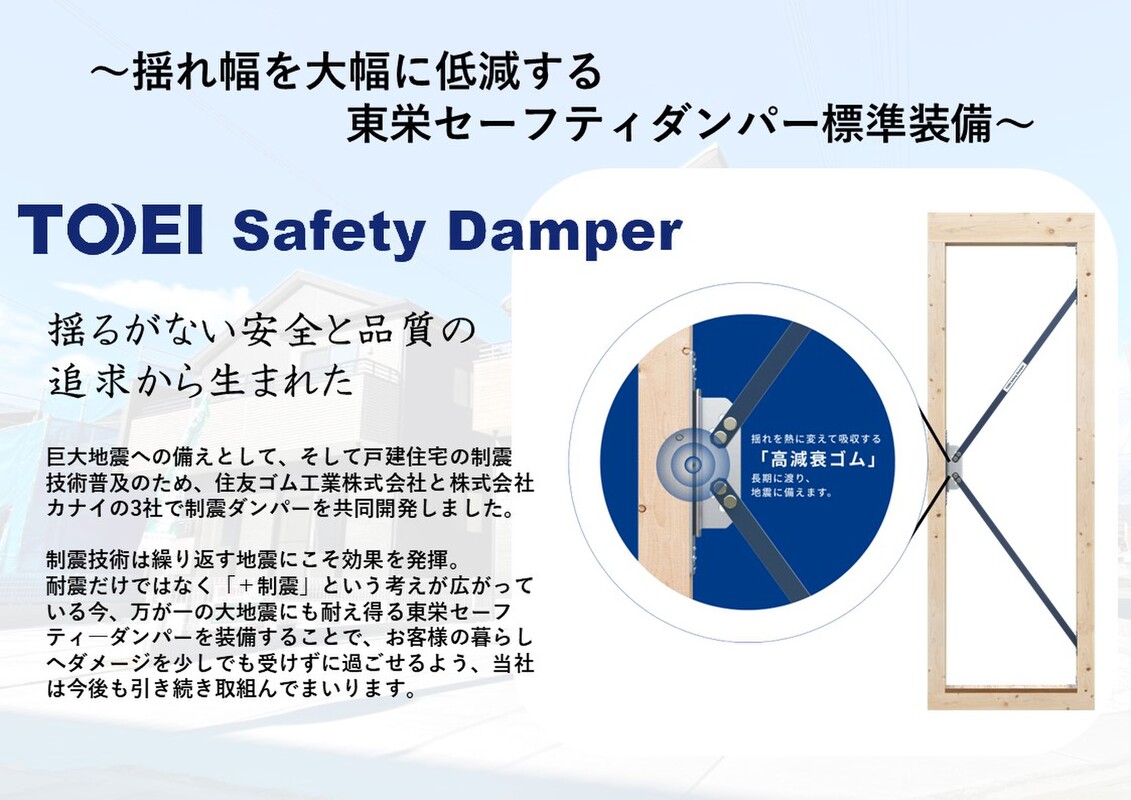 耐震だけではなく「+制震」という考えが広がっている今、万が一の大地震にも耐え得る東栄セーフティ―ダンパーを装備することで、お客様の暮らしへダメージを少しでも受けずに過ごせるよう、今後も引き続き取組んでまいります。