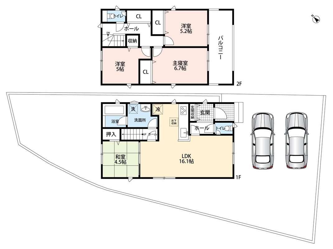 ・ゆとりのある敷地で並列駐車2台可能!