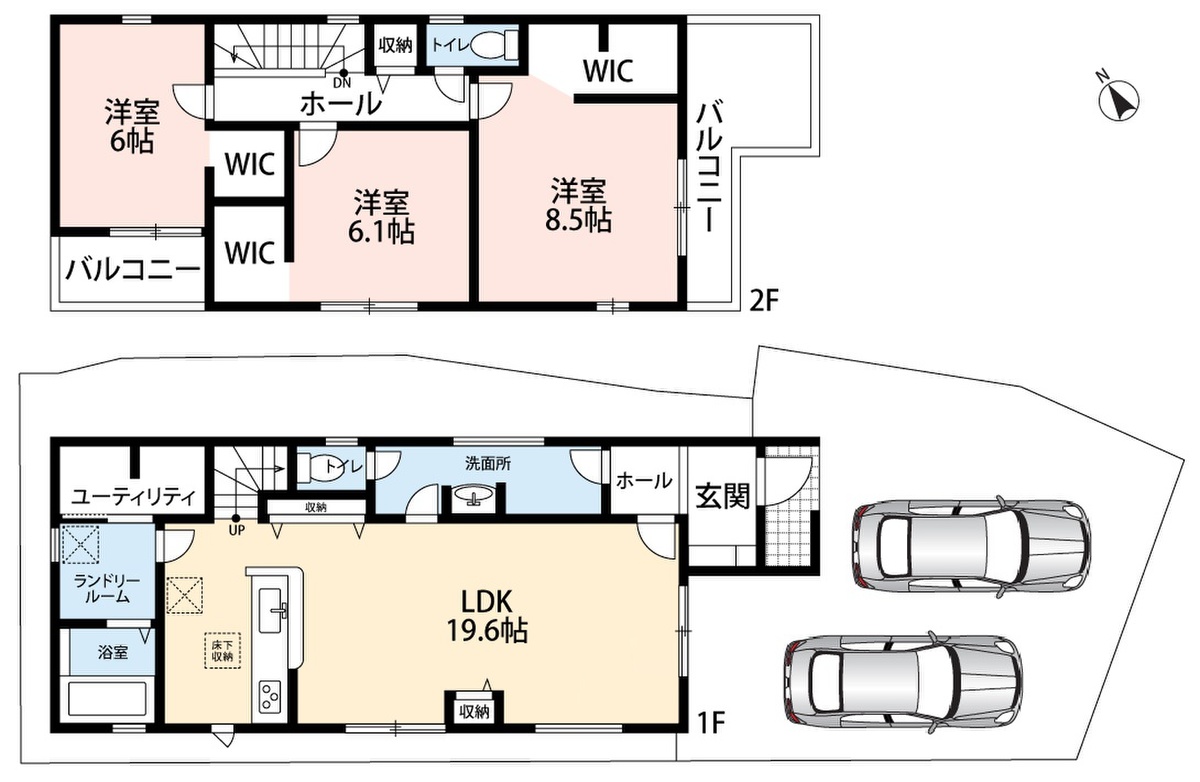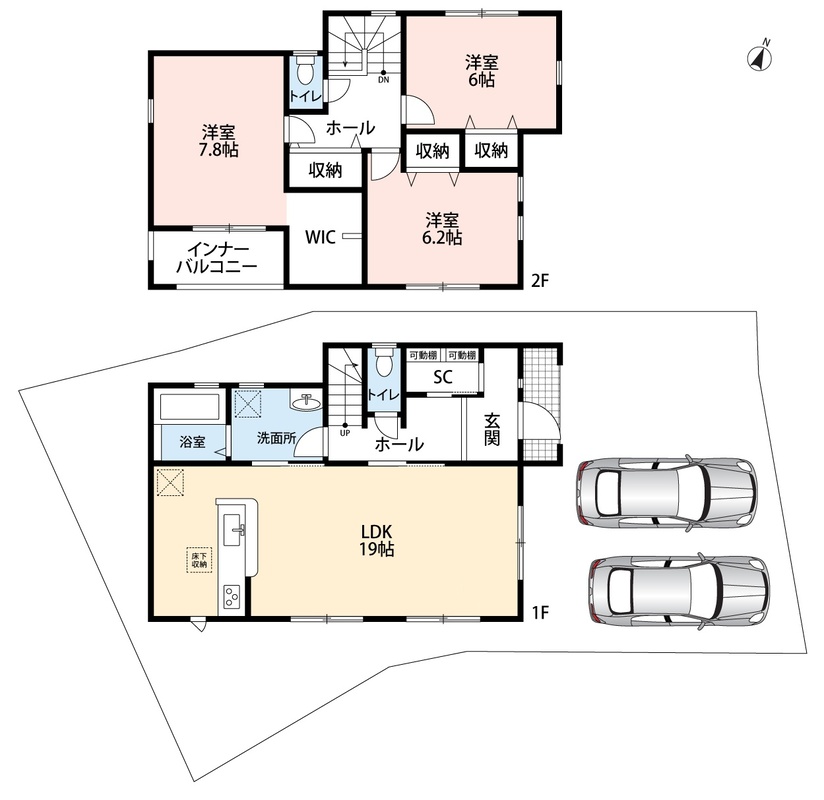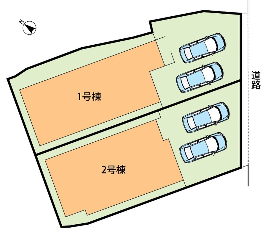 | 駐車場 | 1台 ~ 2台 | 道路の幅員 | 2.7m、アスファルト舗装、セットバック:(1号地)3.4m2、(2号地)4.51m2 |