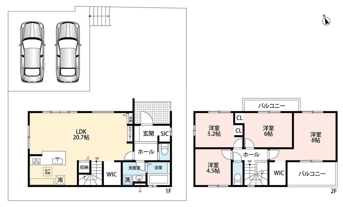 ・前道4.3mでラクラク駐車2台可能!