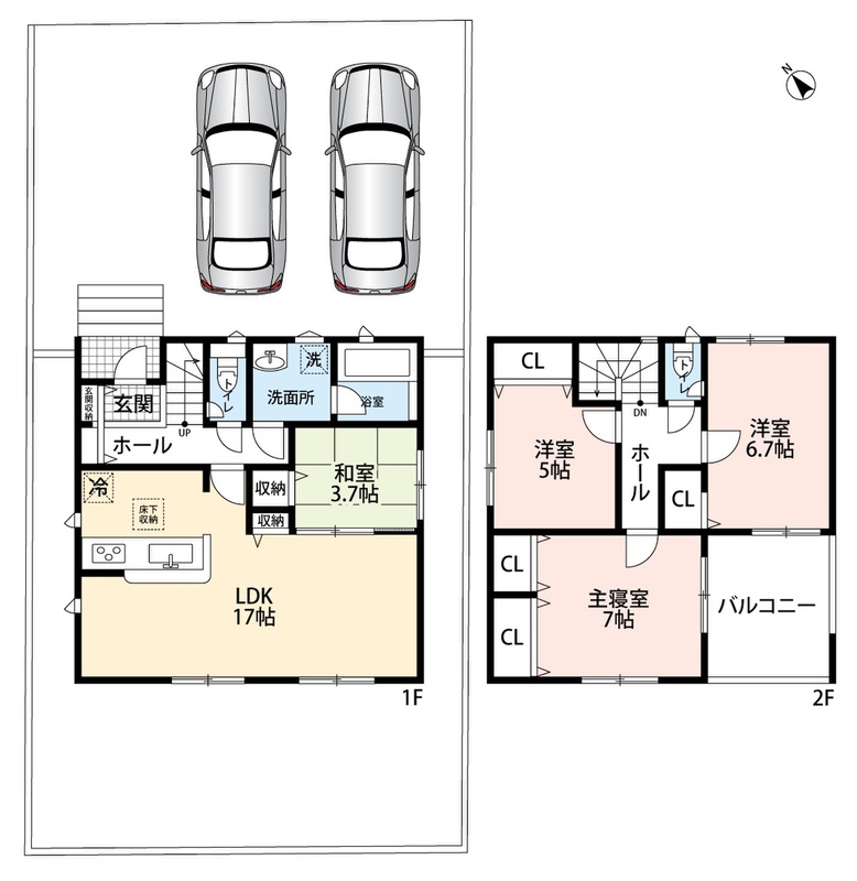 ・前道4,4mでラクラク駐車2台可能!