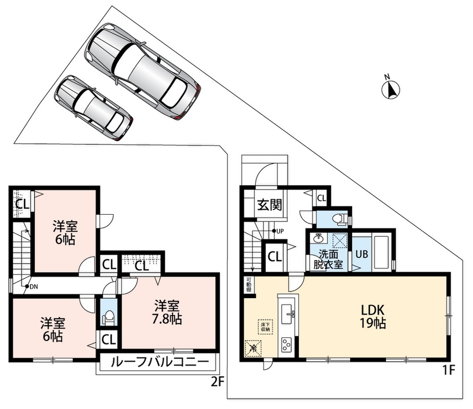 ・前道4.4mでラクラク駐車2台可能!
