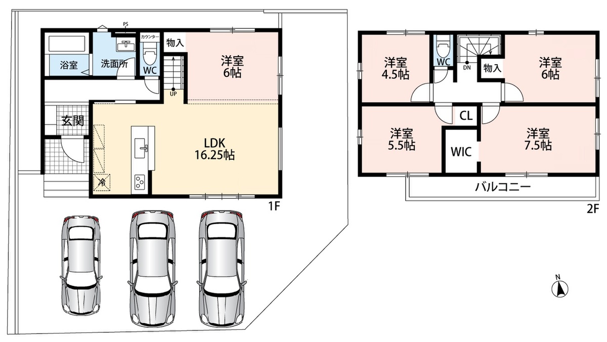 ・前道6.4mでラクラク駐車3台可能!