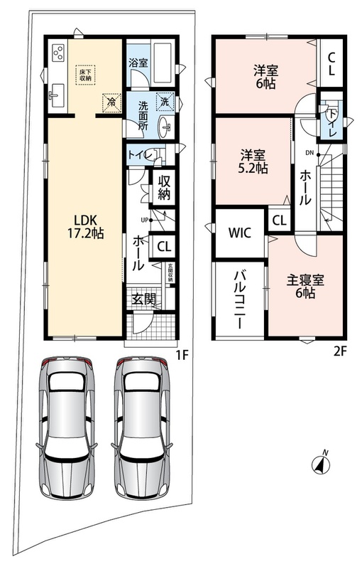 ・ゆとりある敷地で並列駐車2台可能!