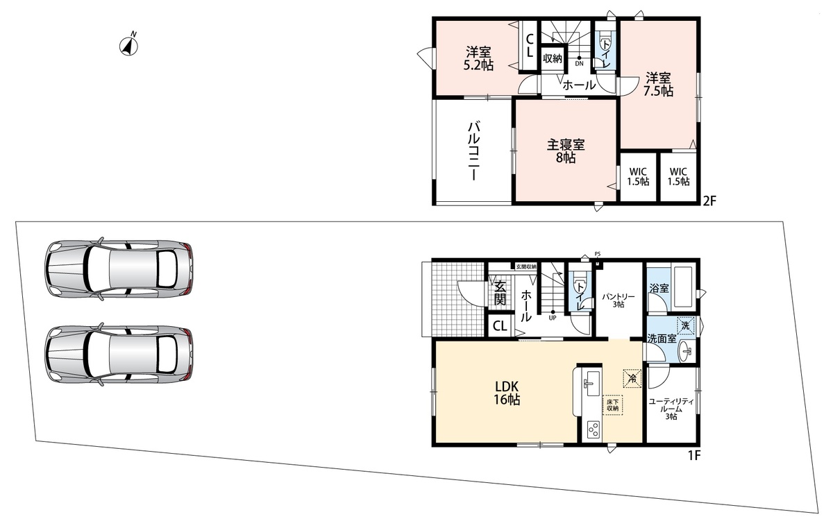 1号地 間取り 3LDK 価格 2280万円 建物面積 108.54m2 土地面積 87.92m2 -