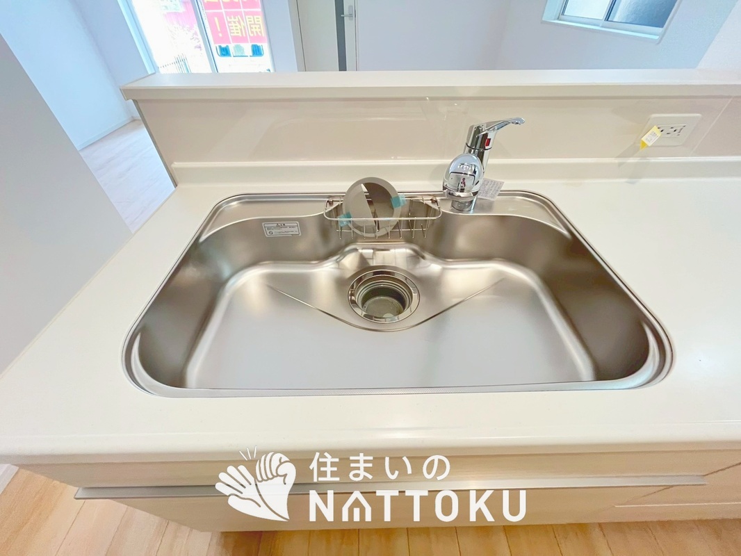 広々とした凸型シンクに洗剤ポケットを標準...