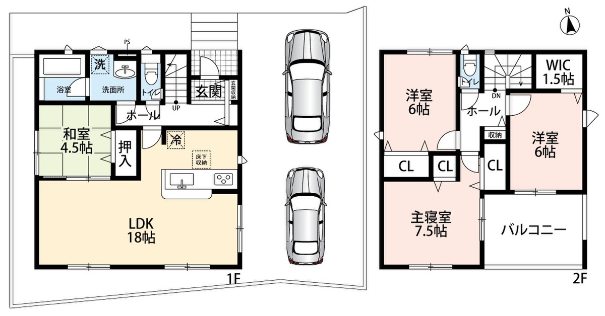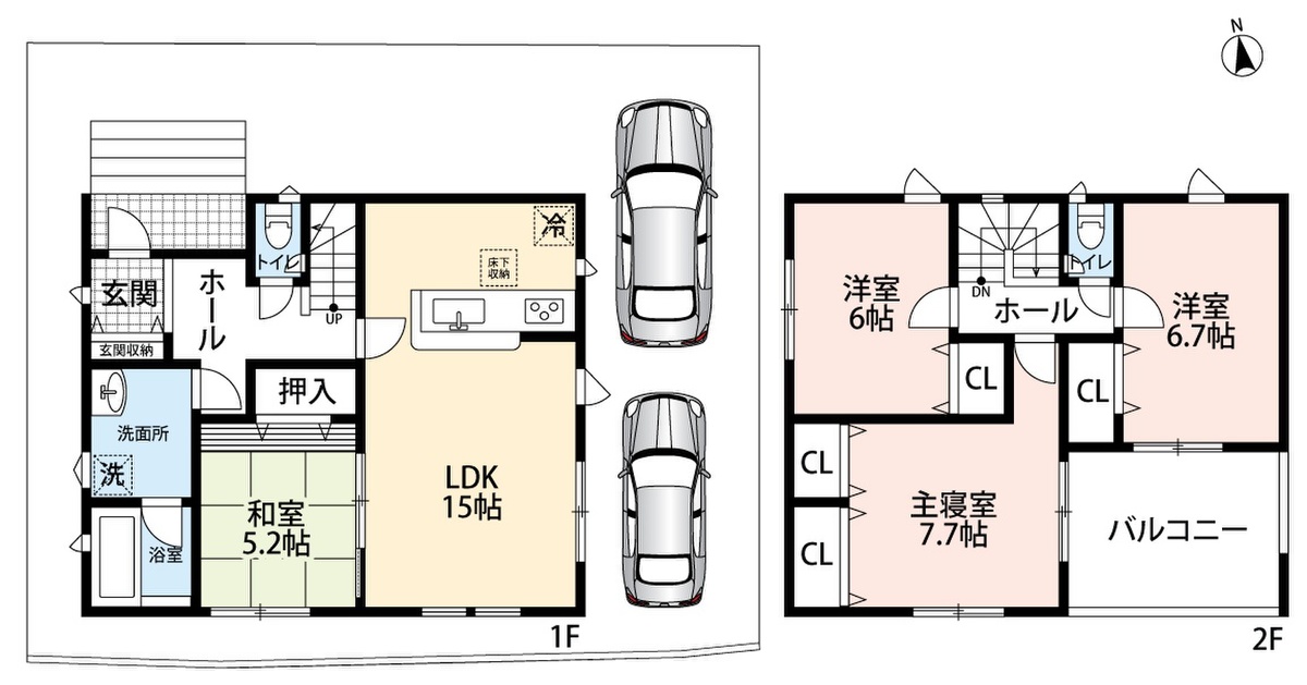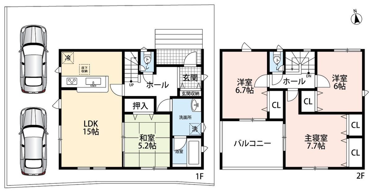 ・前道6mでラクラク駐車2台可能!