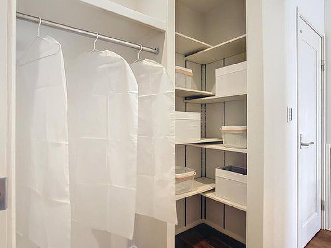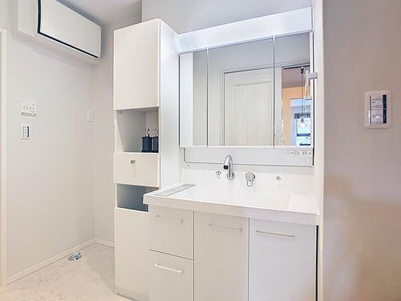 洗練されたデザインと実用性を兼ね備えたサニタリールーム。収納棚...