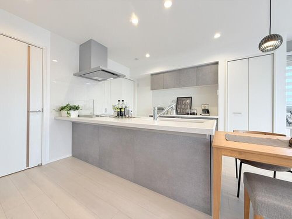 無駄のないデザインと調理スペースの広さが魅力なフラットキッチン...