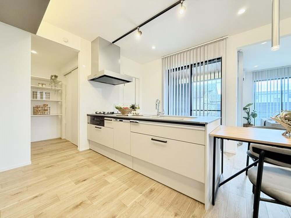 キッチン直通のパントリーは大容量の収納空間です。玄関ホールとも...
